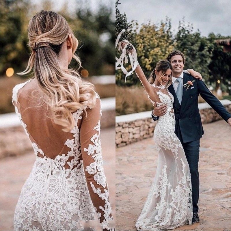 Long Sleeve Sheer Lace Wedding Dress / Sexy Mermaid Long Sleeves Lace Sheer Wedding Dresses Bridal Gowns 99603320 / Glamaker lace up back bardot bodycon dress.. Get the best deals on long sleeve lace wedding dresses and save up to 70% off at poshmark now! Shop with afterpay on eligible items. 'long sleeve wedding dress champagne'. Long sleeve lace wedding dress. Sheer lace wedding dress with chiffon skirt a line wedding dress with short sleeves bateau neckline bridal gown with ribbon.